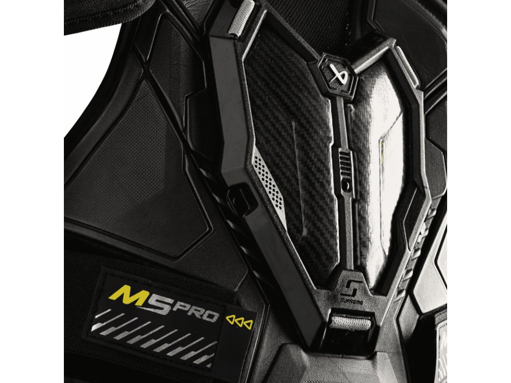 - Výhody AMP střihu ještě zvýrazňuje materiál CURV Composite použitý v oblasti hrudní kosti, který je pevný, ale zároveň pružný a lehký. Navíc zabrání i nechtěnému náhodnému protržení.