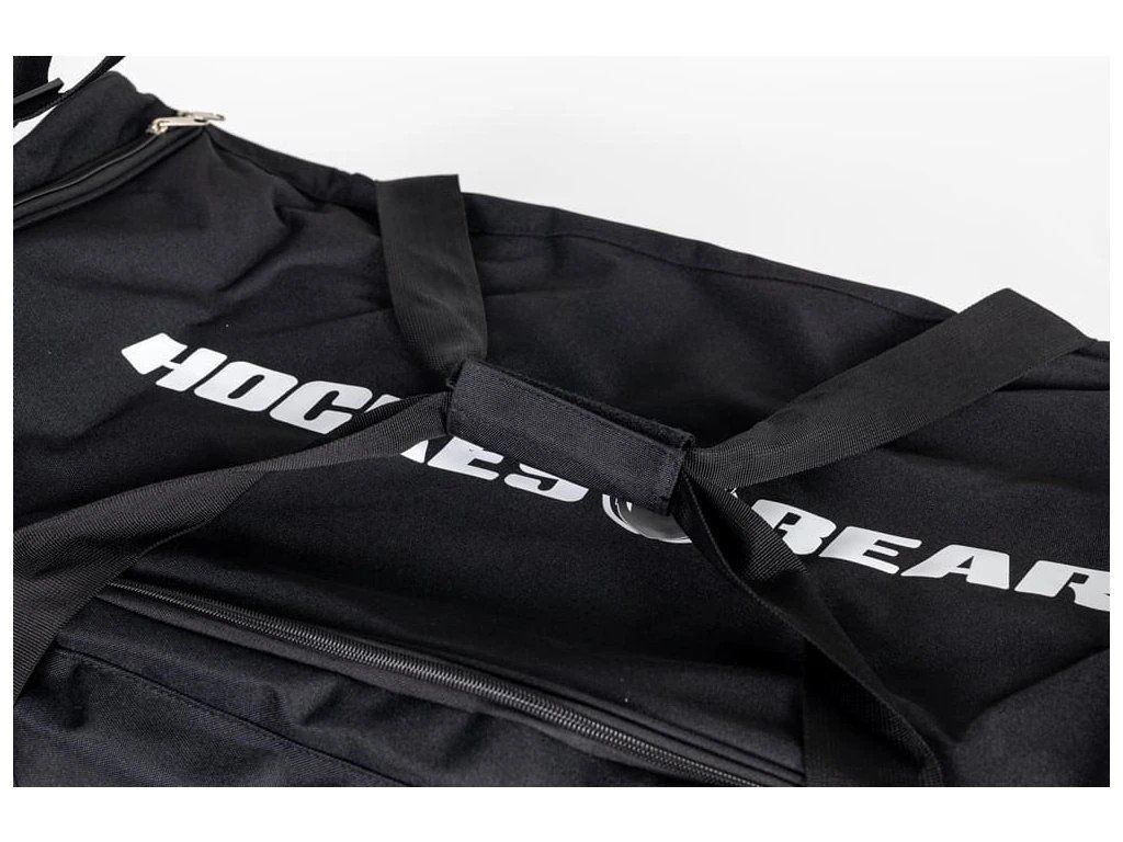Dále taška disponuje dvěmi kratšími popruhy pro možnost transportu tašky v rukách hráče (nebo kustoda...).